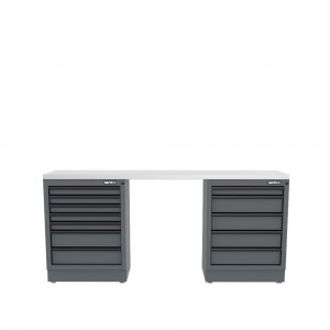 Semloc WorkSpace Kombi-Werkstatteinrichtung mit Edelstahl-ummantelter Arbeitsplatte, Tiefe Arbeitsplatte, 2450x645x950 mm