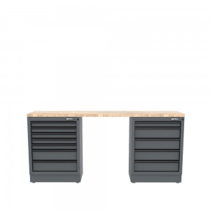 Semloc WorkSpace Kombi-Werkstatteinrichtung mit Holz-Arbeitsplatte, Tiefe Arbeitsplatte, 2400x645x950mm